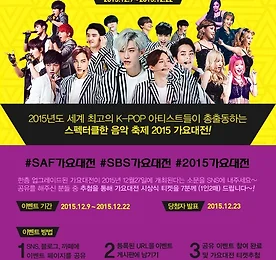 160528 경상북도 개청기념 한마음음악회 Apink 직찍 더보기 151225 KBS 뮤직뱅크 재출근 박초롱 직찍 초롱님.......짱이뻐요 >_< ♥ 더보기 2015 SBS 가요대전 티켓, 방청권, 입장권, 방청신청 ★ 티켓신청 링크 ☞ http://program.sbs.co.kr/builder/programReqNotice.do?pgm_id=22000008876&pgm_build_id=13501&pgm_mnu_id=40163 SBS 가요대전 티켓신청이 시작되었습니다!■ 신청기간 : 2015년 12월9일(수) ~ 12월22일(화)까지■ 당첨자발표 : 12월 23일(수) ※ 15세 이상만 지원가능합니다(15세 이상 시청가) 그리고 SAF에서도 총 5명에게 티켓을 주는 이벤트를 합니다.12월25일 4시30분부터 6시까지 SAF 페스티벌 내에 고미(^^)들이 요기조기에 숨어있대요!숨어있는 고미를 찾아, 가위바위보하고! 고미를 이기면 가요대전티켓을 받을 수 있대요!!^^고미에 대한 힌트는 12월24일 SNS에 공개된다고 합.. 더보기 이전 1 2 3 4 5 6 7 8 ··· 36 다음